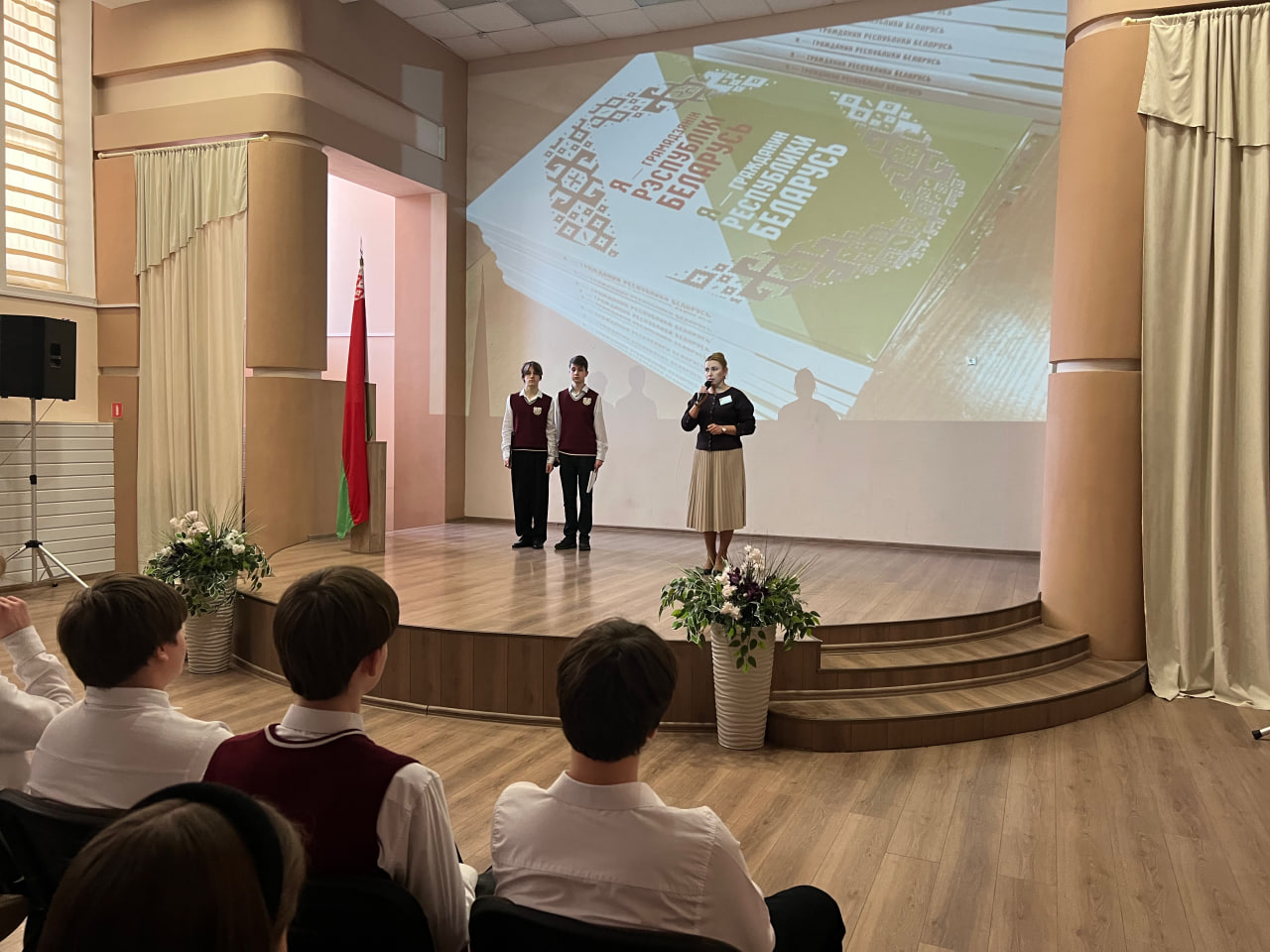 13 марта, на торжественной линейке, посвященной Дню Конституции Республики Беларусь состоялась церемония вручения памятных книг "Я - гражданин Республики Беларусь" - подарочных изданий от президента Республики Беларусь Александра Григорьевича Лукашенко.