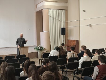 16.03.2026, в рамках месячника по профилактике кризисных состояний, для учащихся 10-11 классов состоялась встреча с директором Духовно-просветительского центра им. святителя Георгия (Конисского) Могилевской и Мстиславский епархии БПЦ иереем Сергеем Сомовым.