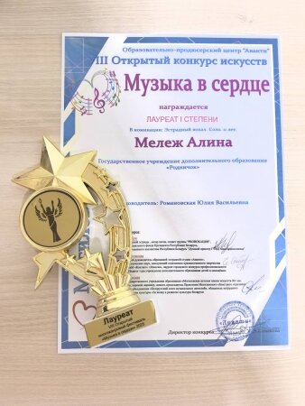 12 декабря в Могилёве в доме культуры ОАО "Моготекс" проходил VIII Многожанровый фестиваль-конкурс искусств "Музыка в сердце". Учащаяся нашего учреждения образования  6 "В" класса Алина Мележ стала Лауреатом I степени. Поздравляем Алину с очередной победой!
