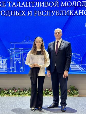 24 декабря в Музее Славы прошло Торжественное чествование обладателей поощрений Специального фонда Президента Республики Беларусь по поддержке талантливой молодежи, а также победитетелей международных и республиканских конкурсов. В числе талантливых ребят нашего города были и представители нашей гимназии: Трофимович Диана (6 "А" класс), Киселева София (7 "Б" класс) и Сомова Надежда (8 "В" класс). Девочки получили дипломы-благодарности и памятные подарки из рук самого мэра Сергея Валерьевича Черткова.