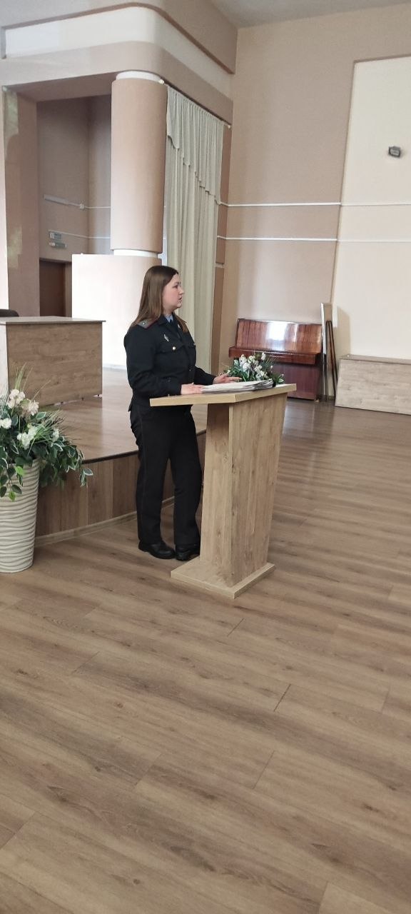 01.04.2026 в нашей гимназии состоялась встреча учащихся 10-х и 11-х классов со специалистом инспекции по делам несовершеннолетних Ленинского РУВД г.Могилева — Калининой Кариной Руслановной.