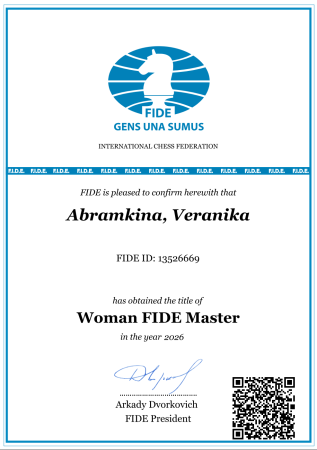 В спортивной жизни 10 «Б» класса снова прекрасная новость: Веронике Абрамкиной присвоили первый титул - женский мастер ФИДЕ. Гордимся нашей звёздочкой и желаем новых побед!