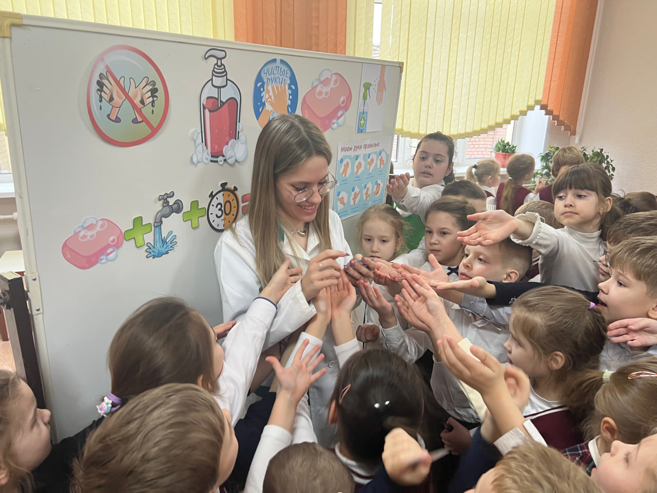 Чтобы привлечь внимание к важности гигиены рук и снизить риск инфекционных заболеваний 3 марта для учащихся 1-2-х классов проведена акция «Чистые руки спасают жизнь». Младшие школьники обучались правильной технике мытья рук в интерактивной форме. В конце мероприятия всем участникам вручили памятные эмблемы-наклейки.