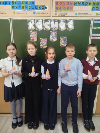 В 4 "Г" классе прошёл классный час, посвящённый дню космонавтики и полету Юрия Гагарина в космос.