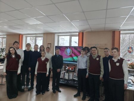 Почетные гости: Старший инспектор ОМВиСО лейтенант милиции Денисенко Сергей Михайлович и Макаров Тимофей, курсант 1 курса Академии Министерства внутренних дел Республики Беларусь, выпускник гимназии.