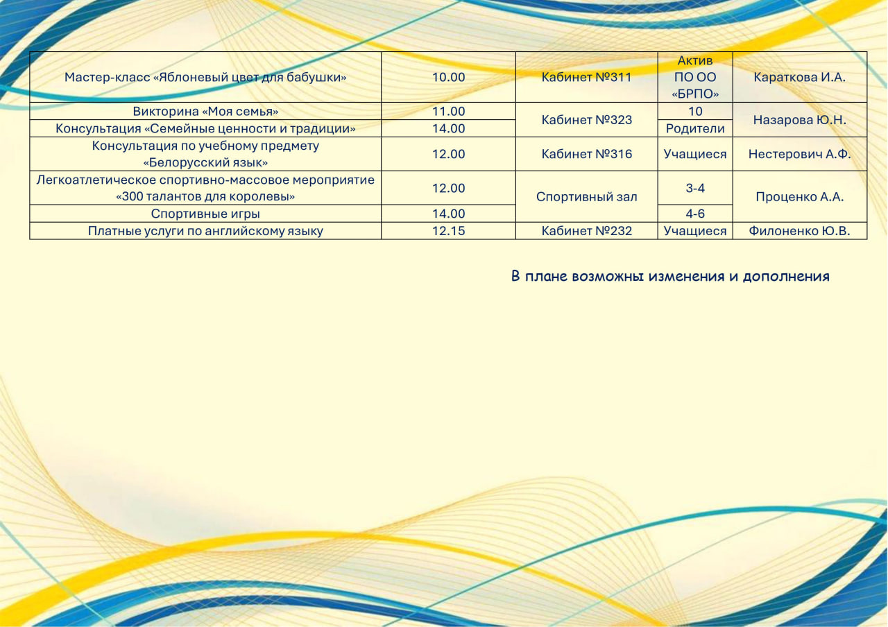 Государственное учреждение образования "Гимназия №3 г.Могилёв" » Суббота в гимназии » План мероприятий в шестой школьный день 20.04.2026 г.