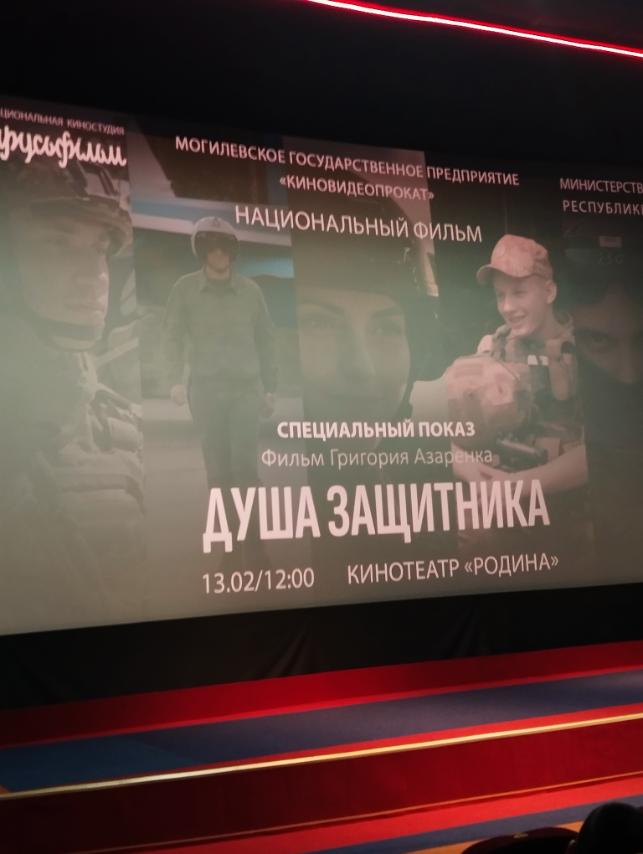 Гимназисты посетили премьеру фильма Григория Азарёнка «ДУША ЗАЩИТНИКА» производства Национальной киностудии «Беларусьфильм» в кинотеатре "Родина".