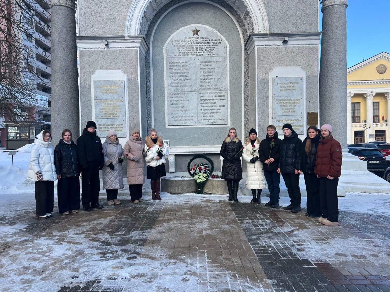 23 февраля администрация, педагоги и учащиеся ГУО "Гимназия N3 г. Могилева"  приняли участие в праздничном возложении, посвященном Дню защитника Отечества и Вооруженных Сил  Республики Беларусь. Делегация нашего учреждения возложила живые цветы к Арке Славы, на которой установлены мемориальные доски, с перечислением частей и соединений Красной Армии, награждённых за участие в Великой Отечественной войне орденами Красного Знамени Суворова II и III степени.