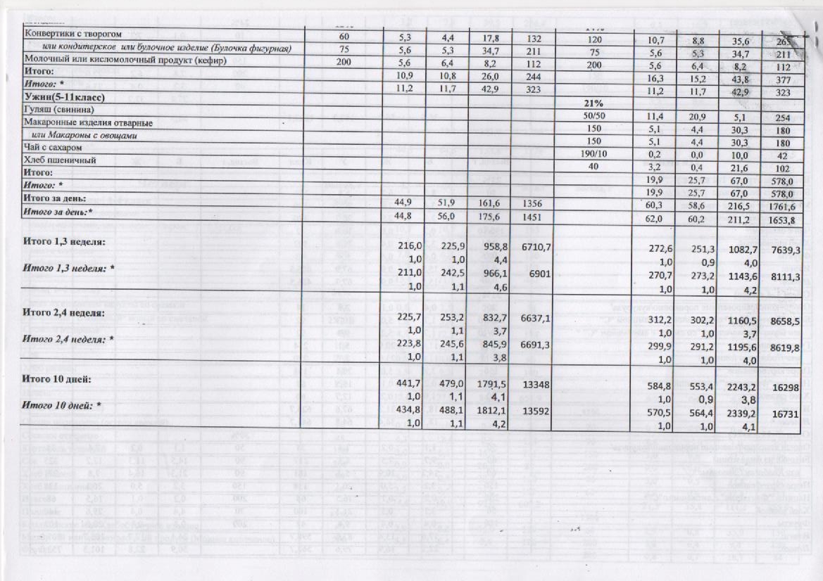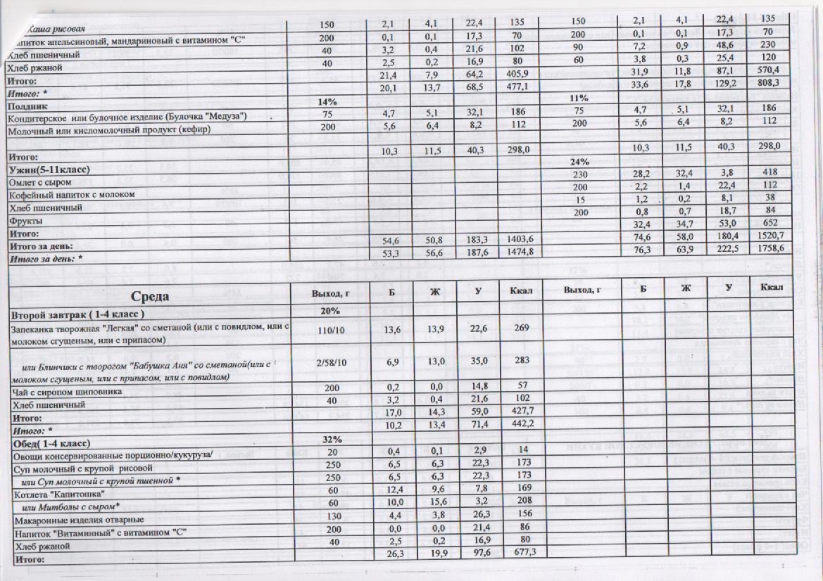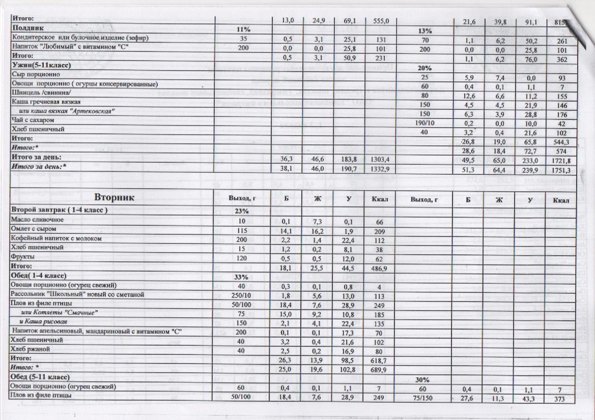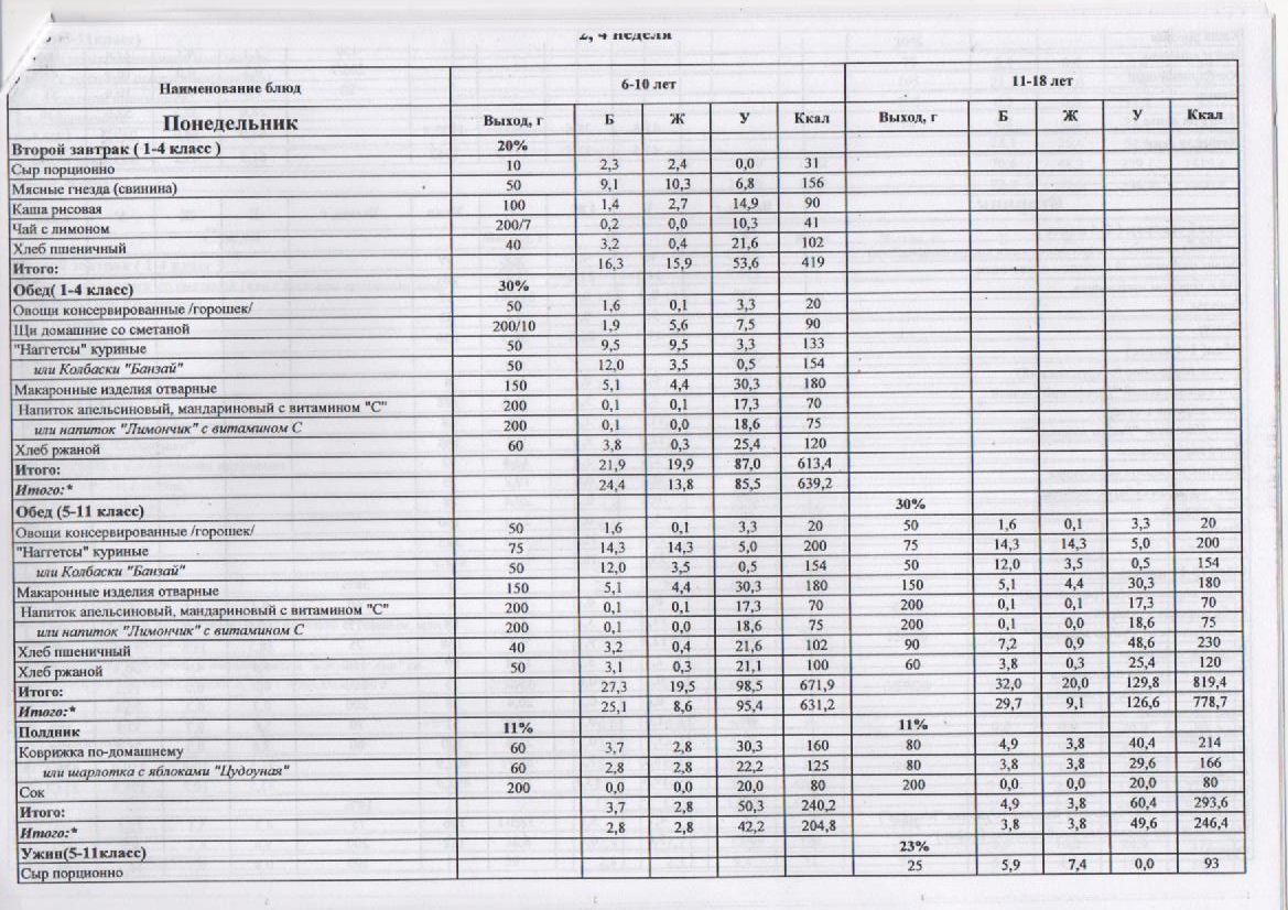 – 1 смена – завтрак на сумму 2,30 рублей.