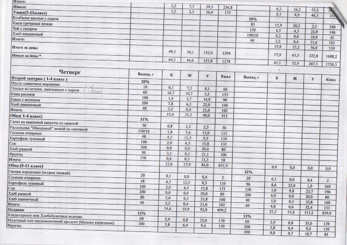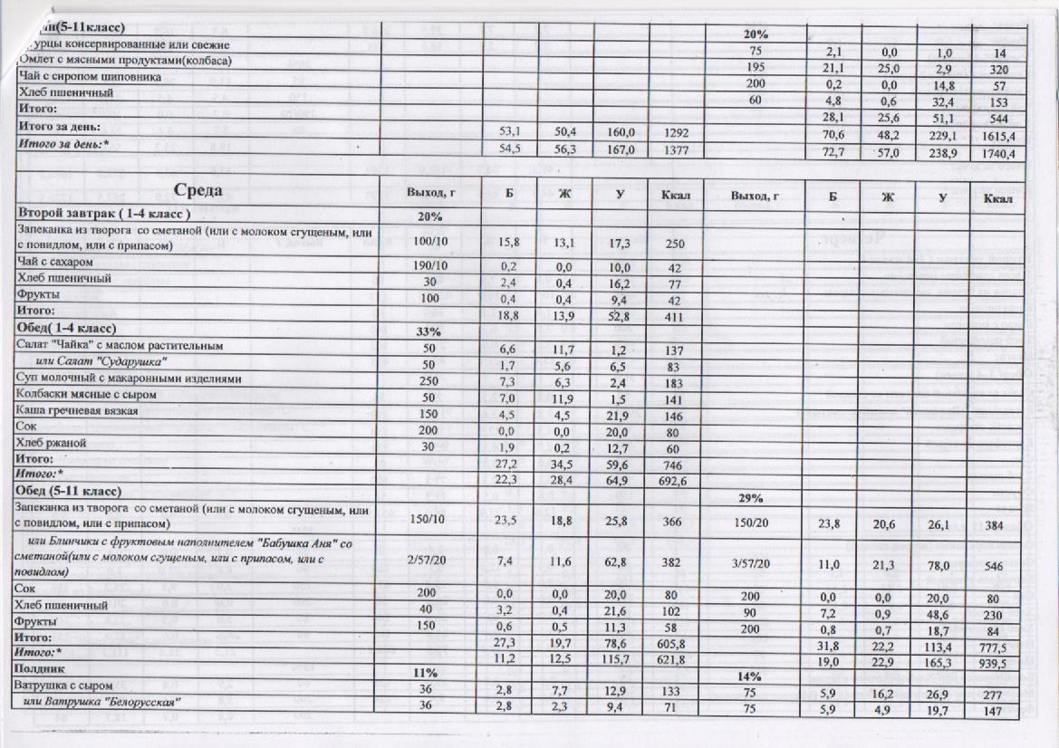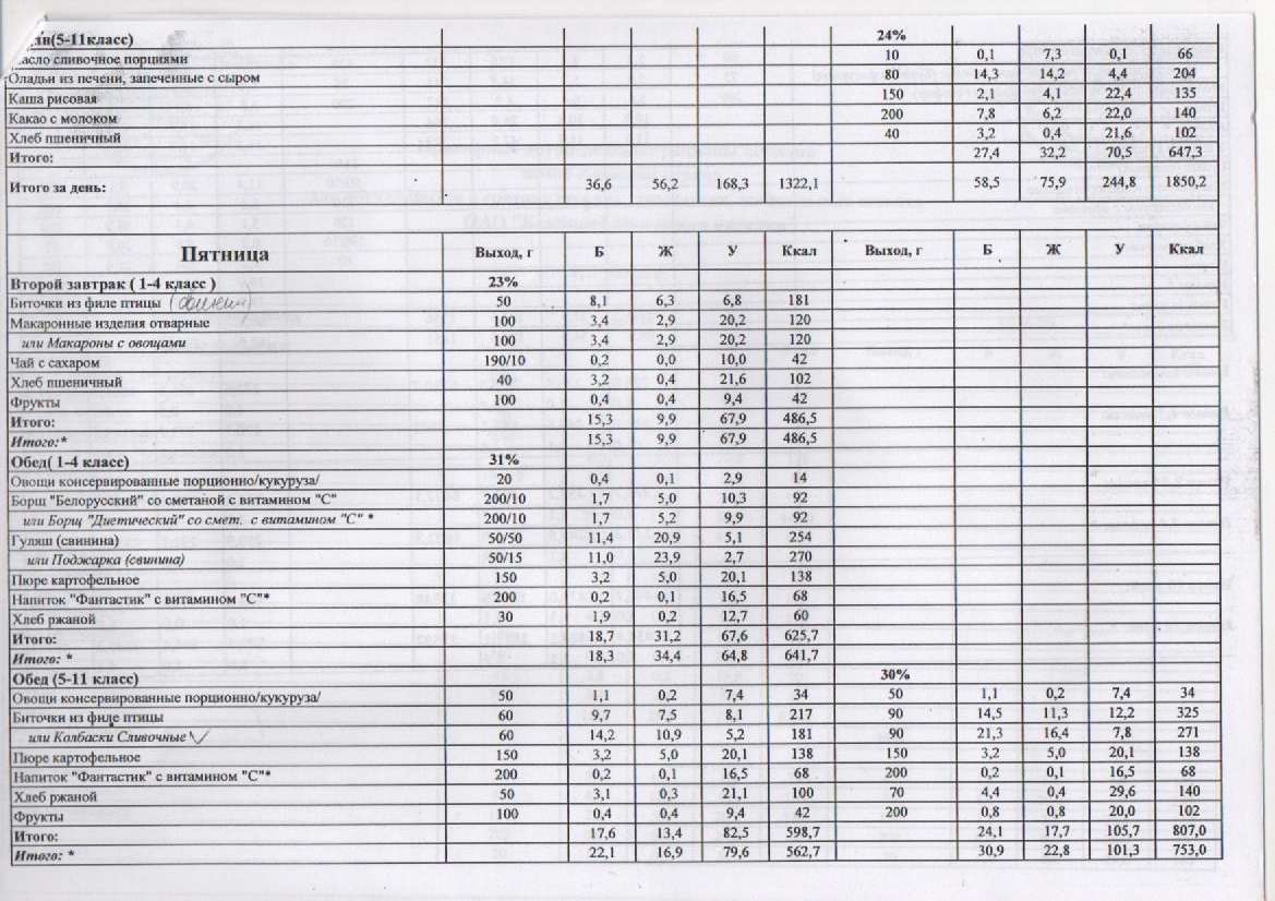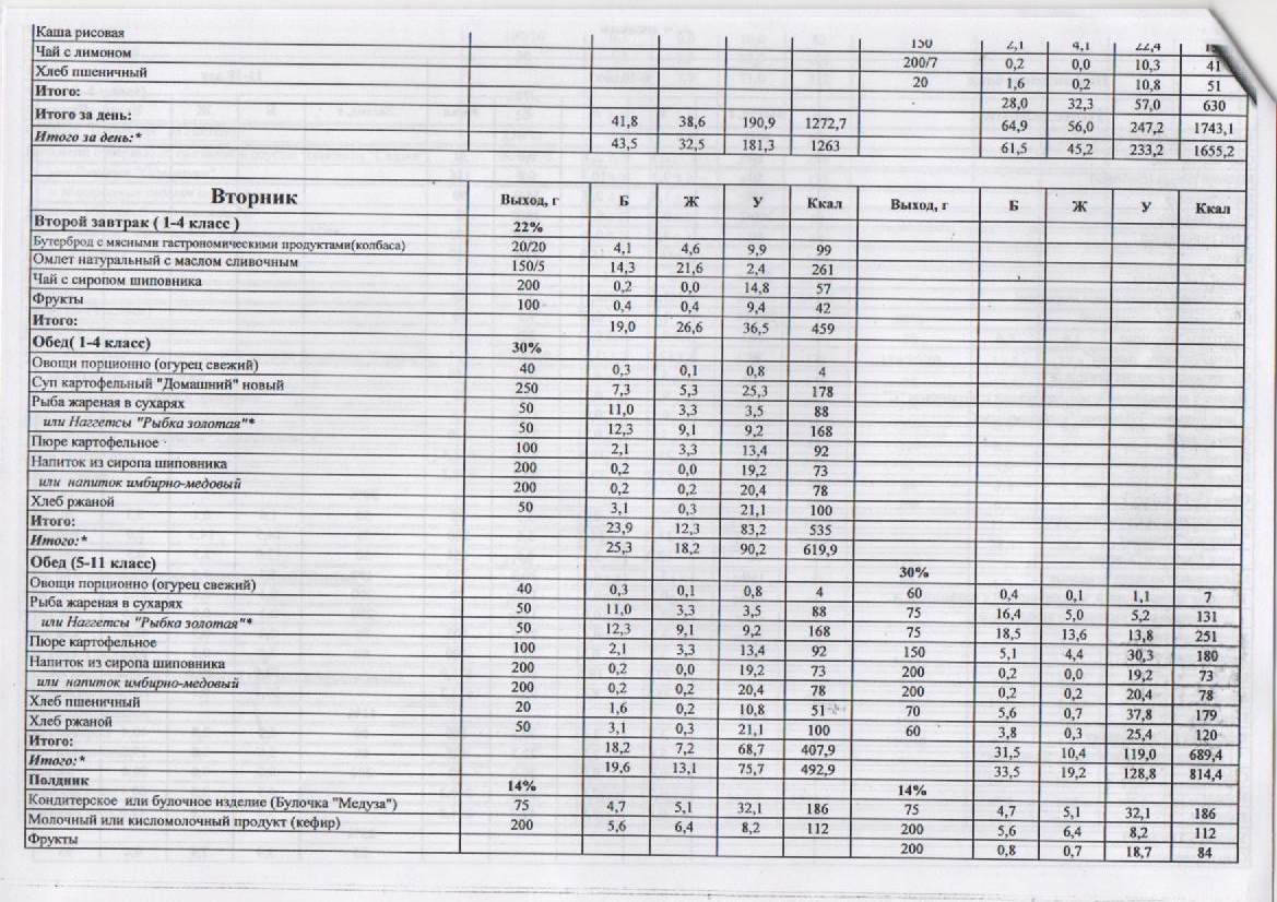– 1 смена – завтрак на сумму 2,30 рублей.