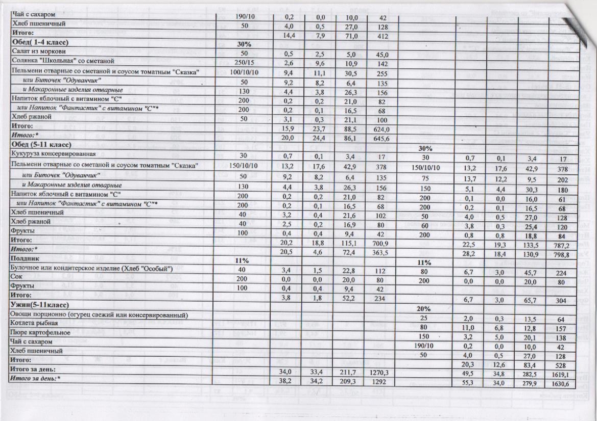 Трехразовое питание для посещающих группу продленного дня из категорий: многодетные семьи, малообеспеченные семьи, дети-инвалиды: