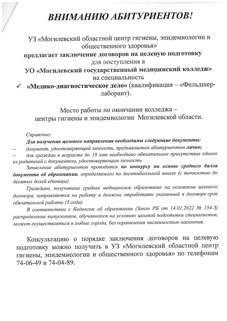 Поступление в могилевский государственный медицинский колледж